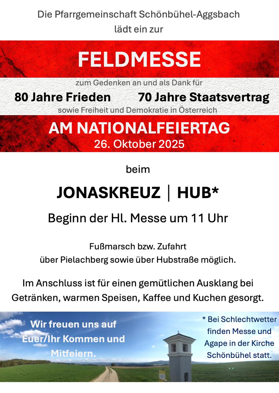 AktuellSonntag, 19. Oktober 2025: Feldmesse zum Gedenktag an und als Dank für 80 Jahre Frieden und 80 Jahre Staatsvertrag: Termine